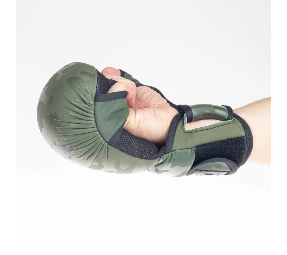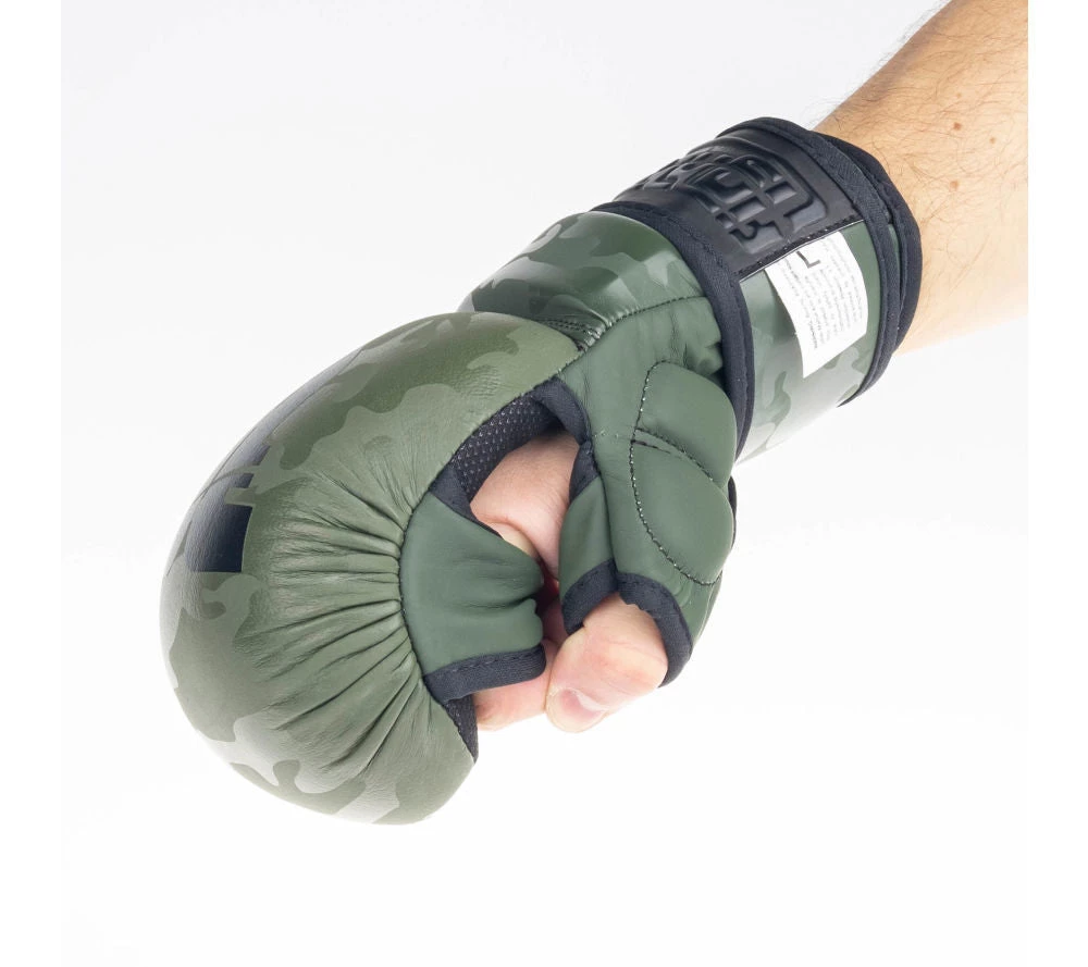 Extra thick padding is used on sparring MMA gloves to avoid injuries during hard training. Open construction gives you freedom for your grappling. Outside material is genuine leather. Lining is made of polyester.