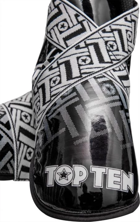 The TOP TEN “SuperLight PRISM” foot protection ensures the best kicksbecause not only do they inspire with their appearance, they also impress with a comprehensive safety package. This includes the dimensionally stable padding made of high-quality PPS foam, the elastic toe loops, the fastening tape, and the non-slip inner material. For the long service life of your foot protectors, the bumper edge is reinforced with tape. Putting on the “SuperLight PRISM” is child’s play thanks to the simple system using the elastic stripes. Skin-friendly anti-slip material is used inside the slightly shiny synthetic leather protectors in the unique PRISM design. With a large selection of colors, TOP TEN’s “SuperLight PRISM” foot protectors cause a color explosion on the mat.