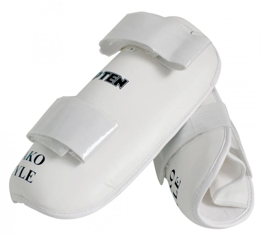 TOP TEN Pre-shaped shinguard with high density foam. Covered with synthetic leather. These shin guards are used for point-fighting sparring and competition in WAKO tournaments and on the open karate tournament circuit. Suitable for light-contact in combination with safety kicks.