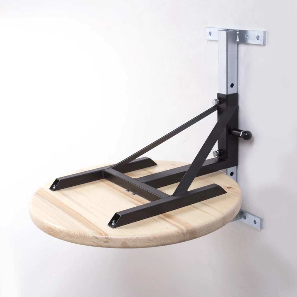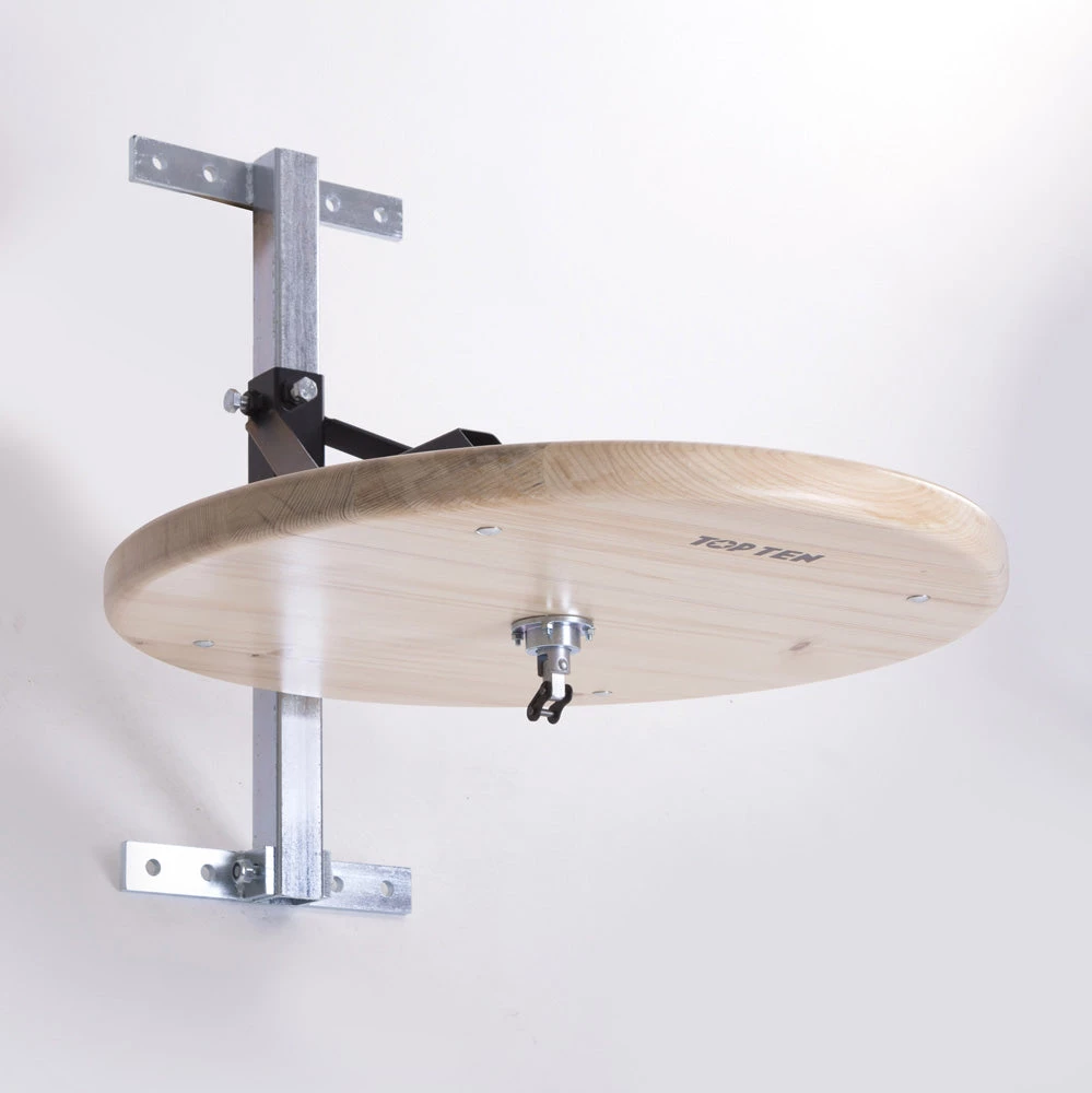This professional speed ball platform can be mounted securely to concrete walls as well as to 16 inch spaced wooden stud walls. Once mounted, the bag can be raised or lowered to a desired height. Support screws located at the top of the adjusting brace prevent any shaking caused by the speed ball striking the platform.