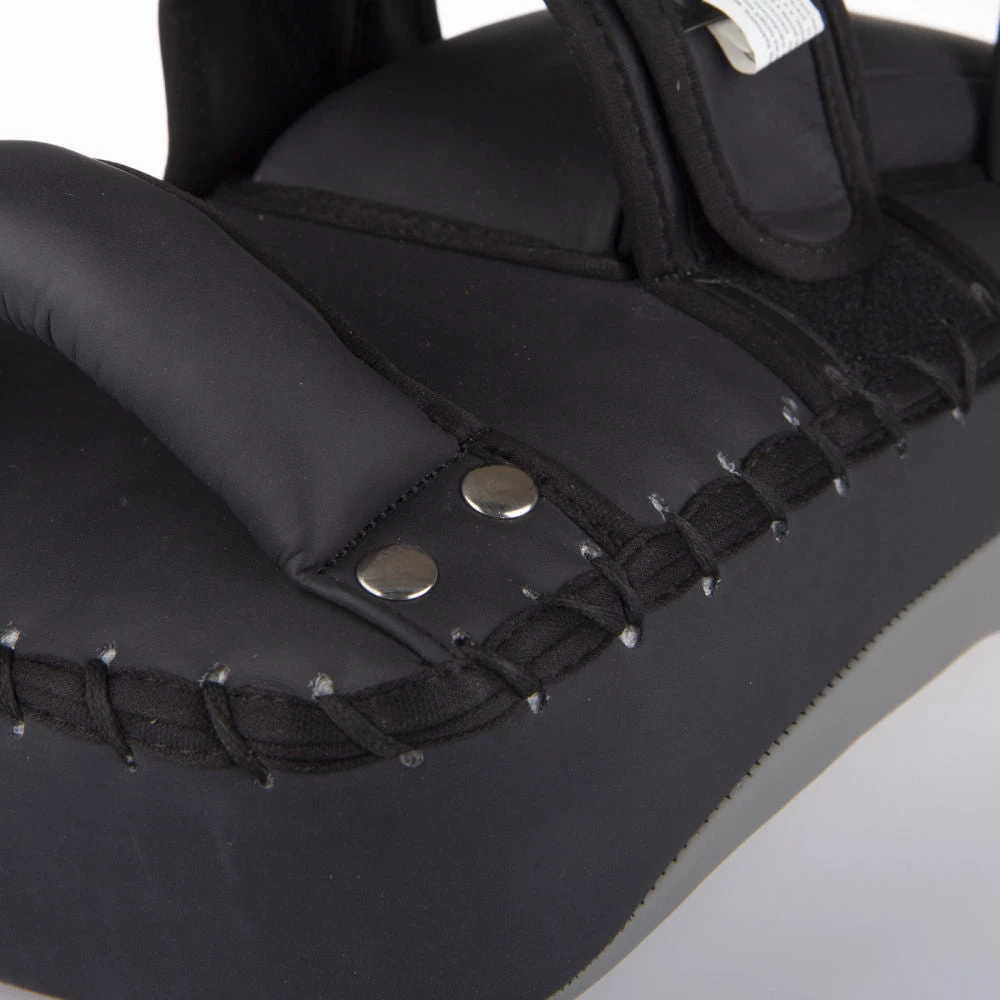Well padded Thai style pads for intensive training including round-kicks and knees. Solid handle in combination with two velcro straps ensures very stable grip with no spinning. Extra soft additional padding under forearm gives great support to your hand.